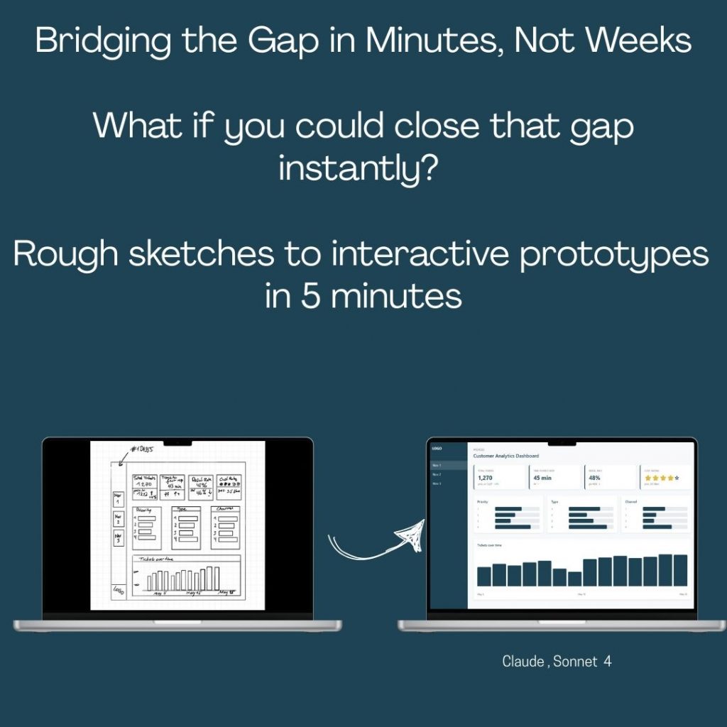 In the last weeks I optimized my approach to this problem: with the right prompts and some very important ingredient, i.e. hand-drawn sketches, you can create interactive HTML prototypes in under 5 minutes. Not static mockups or PowerPoint slides—fully clickable dashboards that clients can test and approve before development begins.